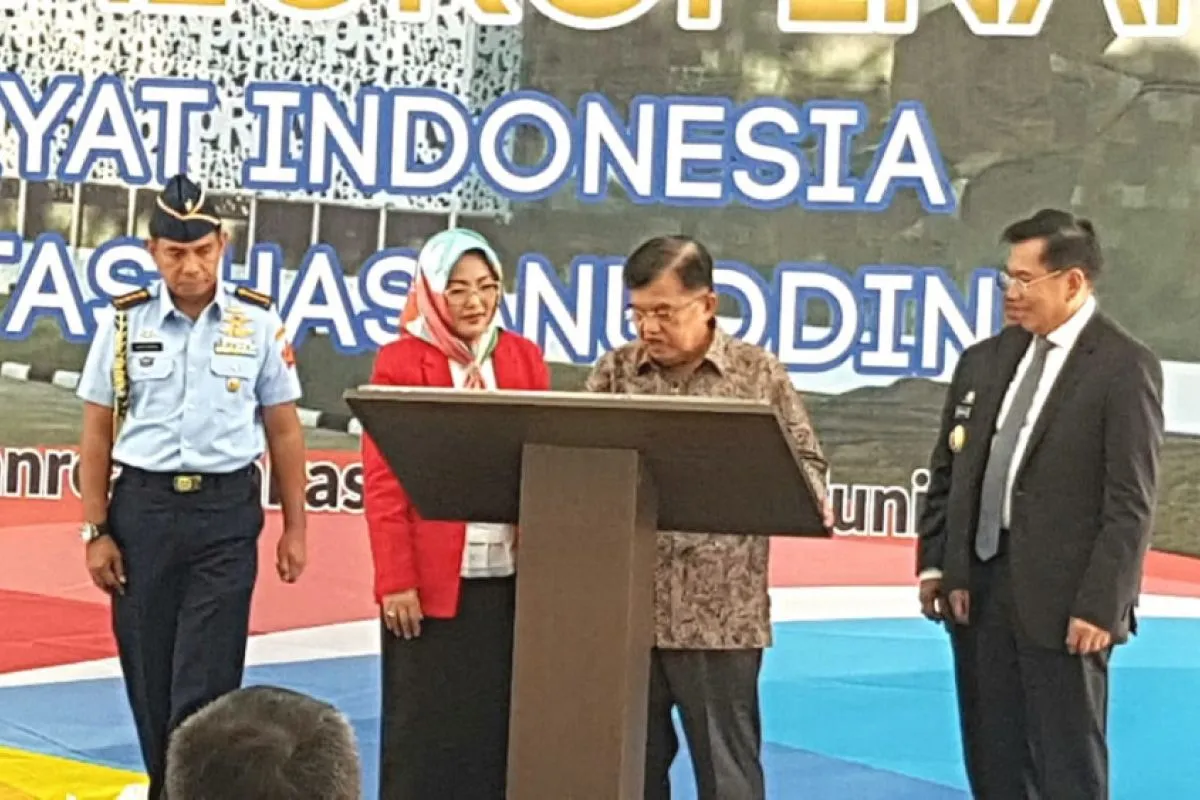 Wapres HM Jusuf Kalla di sela-sela peresmian center of microfinance di Universitas Hasanuddin, Makassar pada Sabtu ( 23/6). FOTO Istimewa