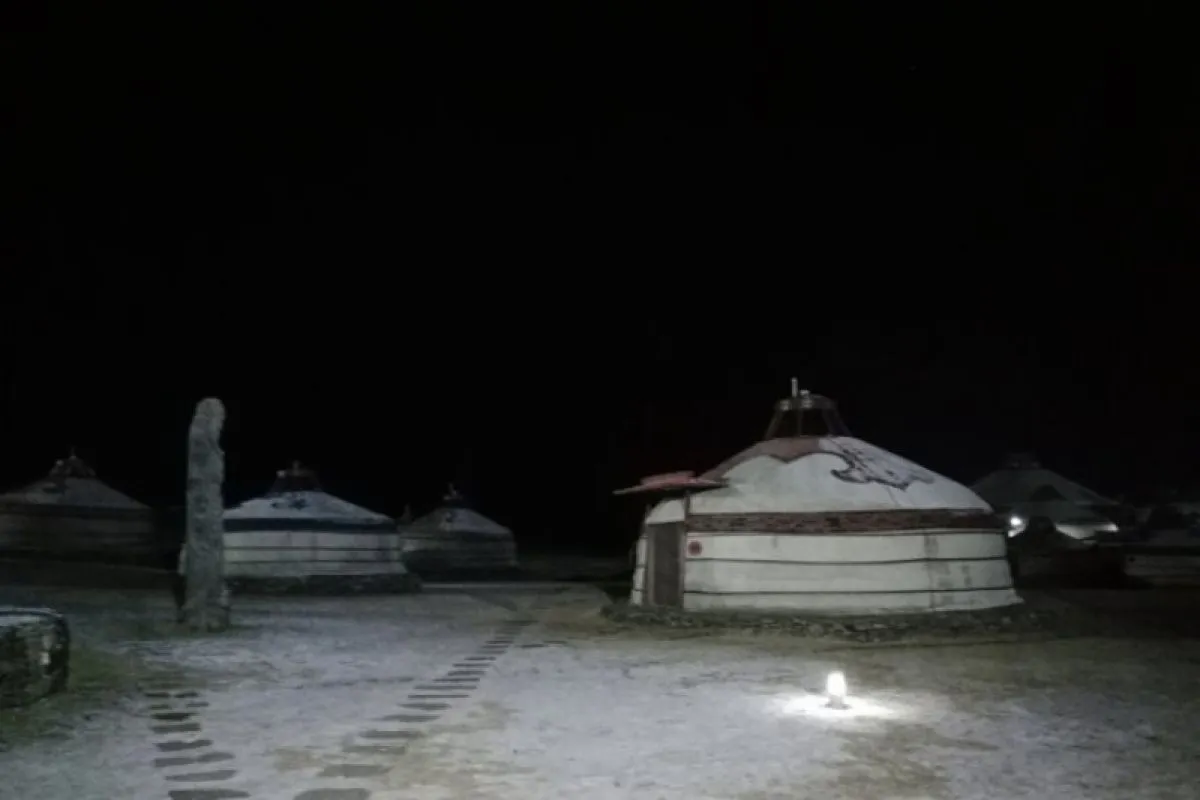 Dinding dan atap "ger" atau rumah kubah berwarna putih penuh dengan hiasan kulit harimau salju (snow leopard), serigala, dan rubah. Bangunan-bangunan bundar berukuran kecil yang berdiri di atas savana itu juga dilengkapi tungku besar untuk mengusir hawa dingin karena suhu udara di Mongolia bisa mencapai minus 42 derajat Celcius pada musim dingin seperti sekarang.