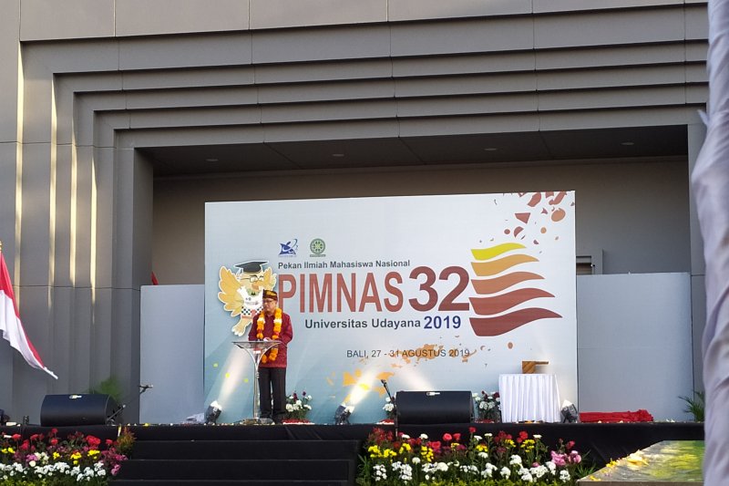 Menteri Riset Teknologi dan Pendidikan Tinggi, Muhamad Nasir dalam kegiatan Pimnas ke-32 di Denpasar, (28/8). (Antara/Ayu Khania Pranisitha/2019)