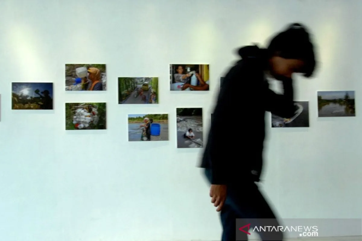 Pengunjung memperhatikan karya fotografi berjudul 'Perempuan Tangguh Dari Tinambung' dalam pameran seni rupa Makassar Biennale di Gedung Kesenian, Makassar, Sulawesi Selatan, Selasa (3/9/2019). Pameran Makassar Biennale 2019 yang mengangkat tema migrasi, sungai dan kuliner tersebut memamerkan sejumlah karya seni rupa dari sejumlah seniman diantaranya seni instalasi, literasi, fotografi dan karya seni rupa dua dimensi dan tiga dimensi. ANTARA FOTO/Abriawan Abhe/YU