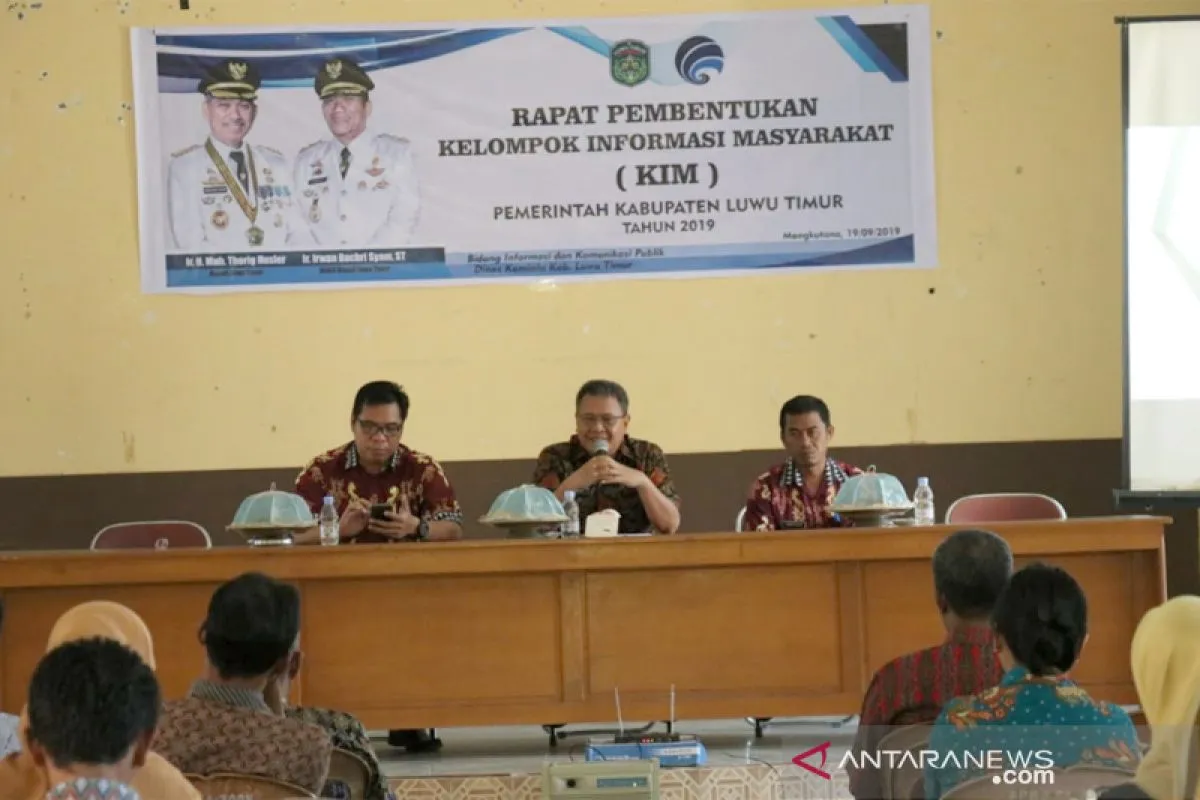 Malili (ANTARA) - Dinas Komunikasi dan Informatika (Kominfo) Kabupaten Luwu Timur melalui Bidang Informasi dan Komunikasi Publik menggelar sosialisasi dan rapat pembentukan Kelompok Informasi Masyarakat (KIM) di Aula Kantor Camat Mangkutana, Luwu Timur, Kamis (19/9).