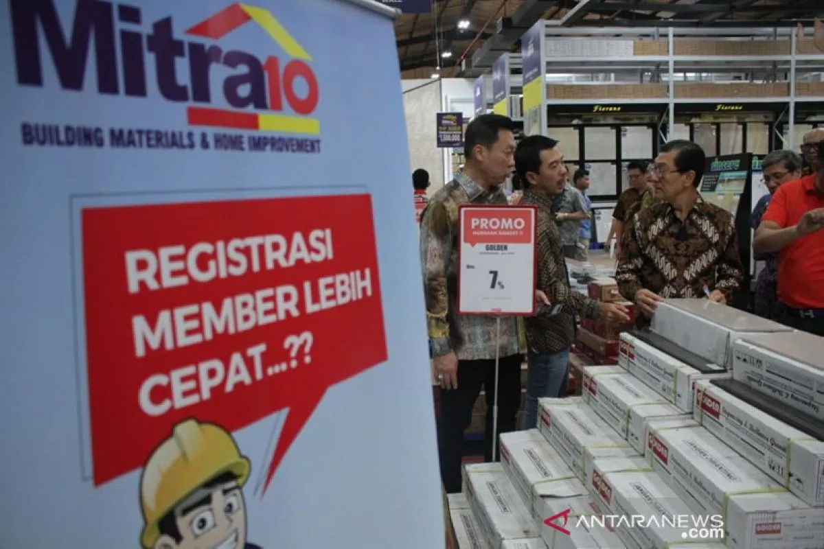 Presiden Direktur PT Catur Sentosa Adiprana Tbk, Budyanto Totong (kanan) berbincang bersama Presiden Direktur Mitra10 Andy Totong (tengah) saat pembukaan Mitra10 dan Atria di Makassar, Sulawesi Selatan, (14/11/2019). PT Catur Sentosa Adiprana Tbk memilih Kota Makassar sebagai tonggak awal ekspansi Mitra10 dan Atria ke Kawasan Timur Indonesia dengan meresmikan Mitra10 yang ke-33 dan atria yang ke-12 di Kota Makassar, Sulawesi Selatan yangmenawarkan 25.000 SKU (item). ANTARA FOTO/Yusran Uccang