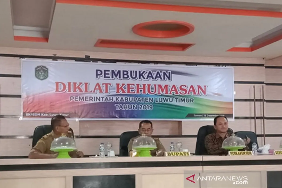 Malili (ANTARA) - Sebanyak 50 orang pejabat Pemerintah Kabupaten Luwu Timur (Pemkab Lutim) mengikuti pendidikan dan pelatihan (Diklat) Kehumasan kerjasama Badan Kepegawaian dan Pengembangan Sumber Daya Manusia (BKPSDM) dengan Pusat Kajian Pelatihan dan Pengembangan (Puskapem) SDM Pusat.