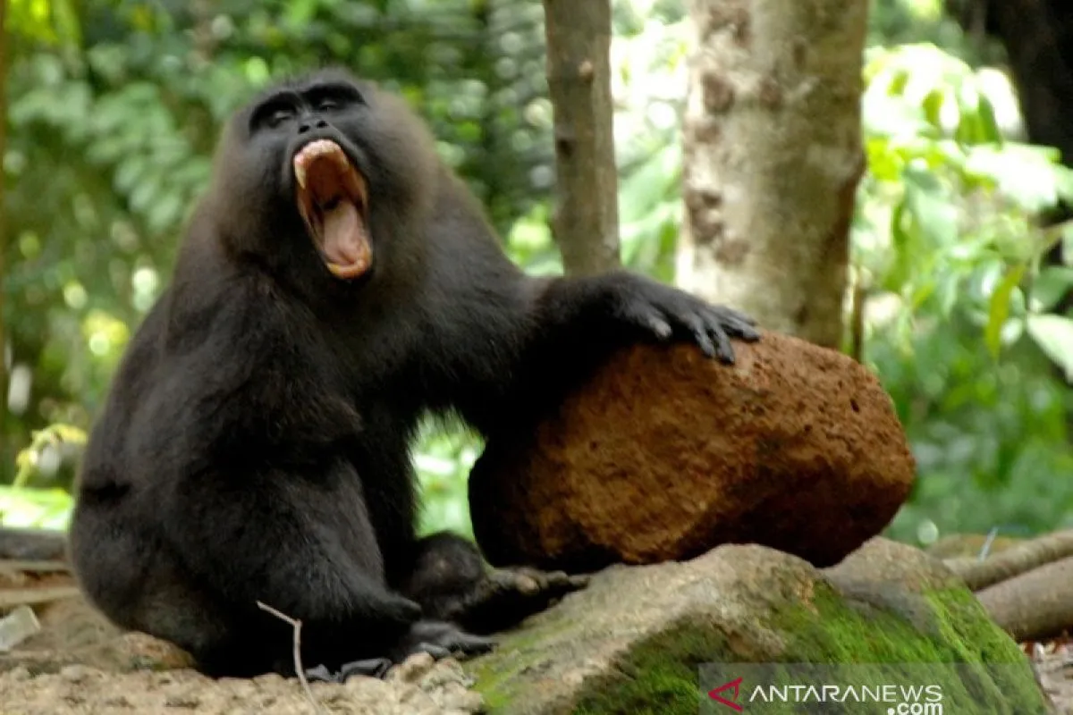 Sekelompok kera tanpa ekor jenis 'Macaca maura' khas Sulawesi berkumpul di pinggir jalan poros Camba, Kabupaten Maros, Sulawesi Selatan, Selasa (24/12/2019). Kementrian Lingkungan Hidup dan Kehutanan menyatakan kera jenis Macaca maura termasuk satwa terancam punah prioritas yang disebabkan terganggu habitatnya seperti pembukaan lahan di hutan dan menjadi sasaran perburuan masyarakat karena dianggap sebagai hama pertanian. ANTARA FOTO/Abriawan Abhe/YU
