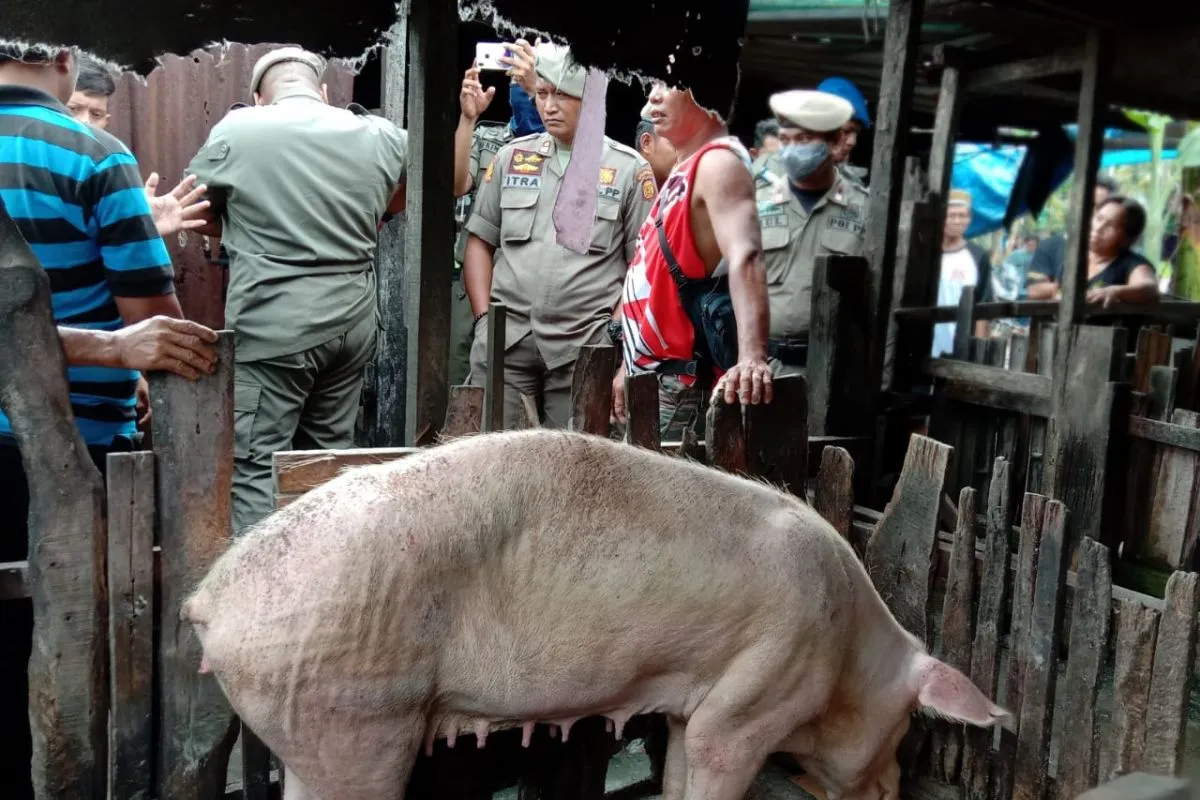 Hal itu berkaitan dengan laporan masyarakat setempat soal peternakan babi yang menggangu dan diduga telah mencemari lingkungan karena adanya aktivitas peternakan tersebut.