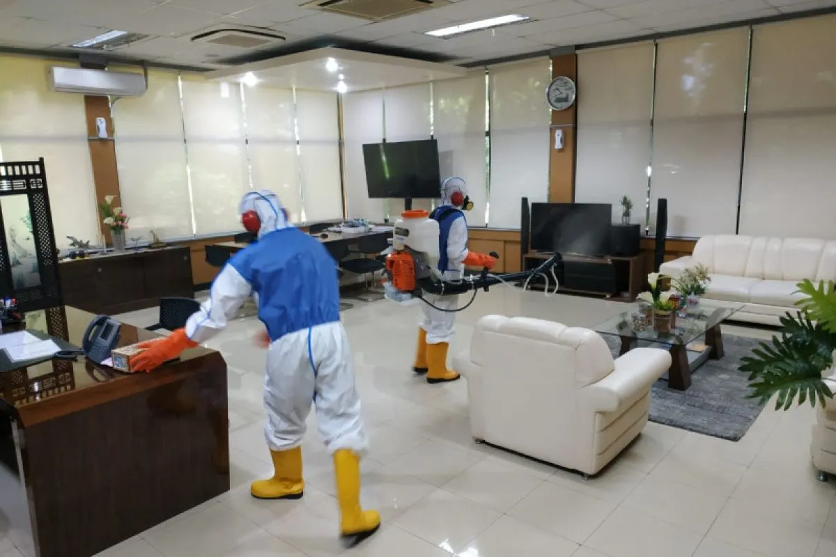 "Penyemprotan ini juga untuk memastikan pekerja yang masih harus datang ke kantor merasa aman dan tidak khawatir dengan lingkungan kerjanya," tambahnya.
