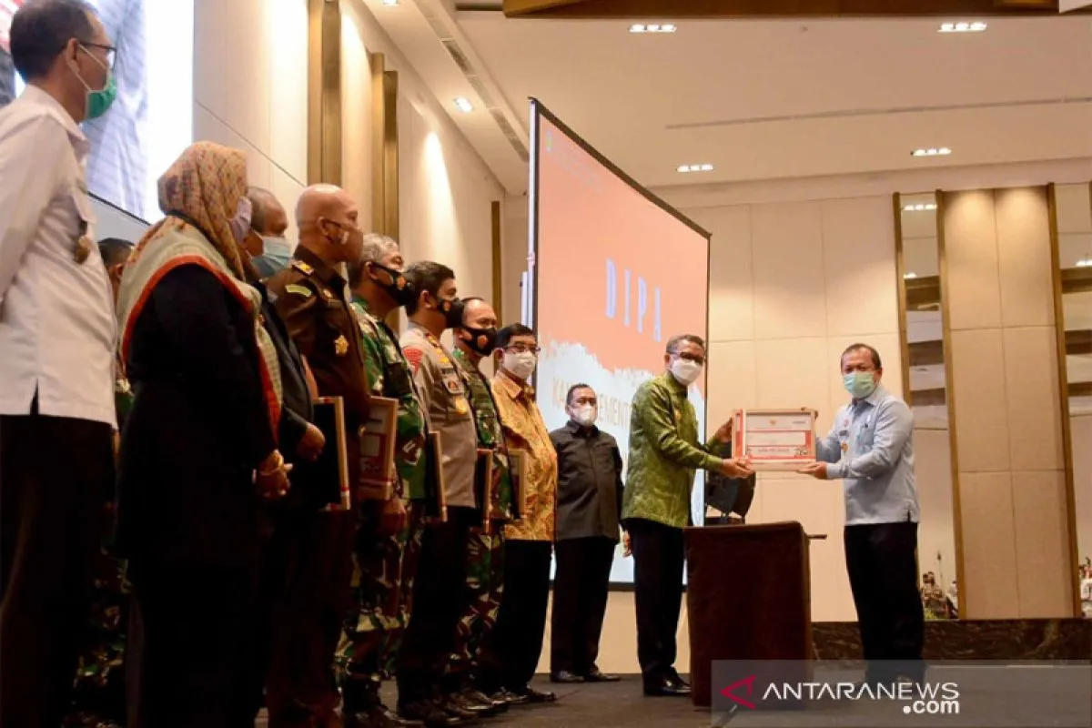 Makassar (ANTARA) - Gubernur Sulawesi Selatan Nurdin Abdullah menyerahkan Daftar Isian Pelaksanaan Anggaran (DIPA) Tahun Anggaran 2021 kepada Kepala Kantor Wilayah Kementerian Hukum dan HAM Sulsel Harun Sulianto pada Rakor Pengendalian dan Evaluasi Pelaksanaan Program dan Kegiatan Pembangunan Provinsi Sulsel, Senin (30/11/2020).