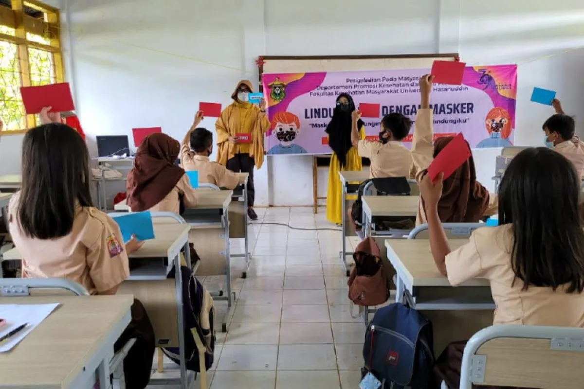Makassar (ANTARA) - Fakultas Kesehatan Masyarakat Universitas Hasanuddin (FKM Unhas) turut serta mengedukasi siswa sekolah dasar untuk membiasakan penggunaan masker saat Pertemuan Tatap Muka (PTM) Sekolah.