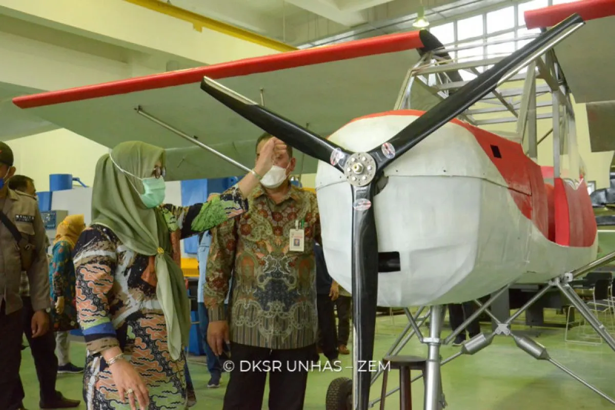 Rektor Unhas Dwia Aries Tina Pulubuhu saat meninjau langsung kondisi pesawat itu di Gowa, Kamis (30/12), mengapresiasi kinerja tim PPH Unhas dalam mengembangkan pesawat tersebut.