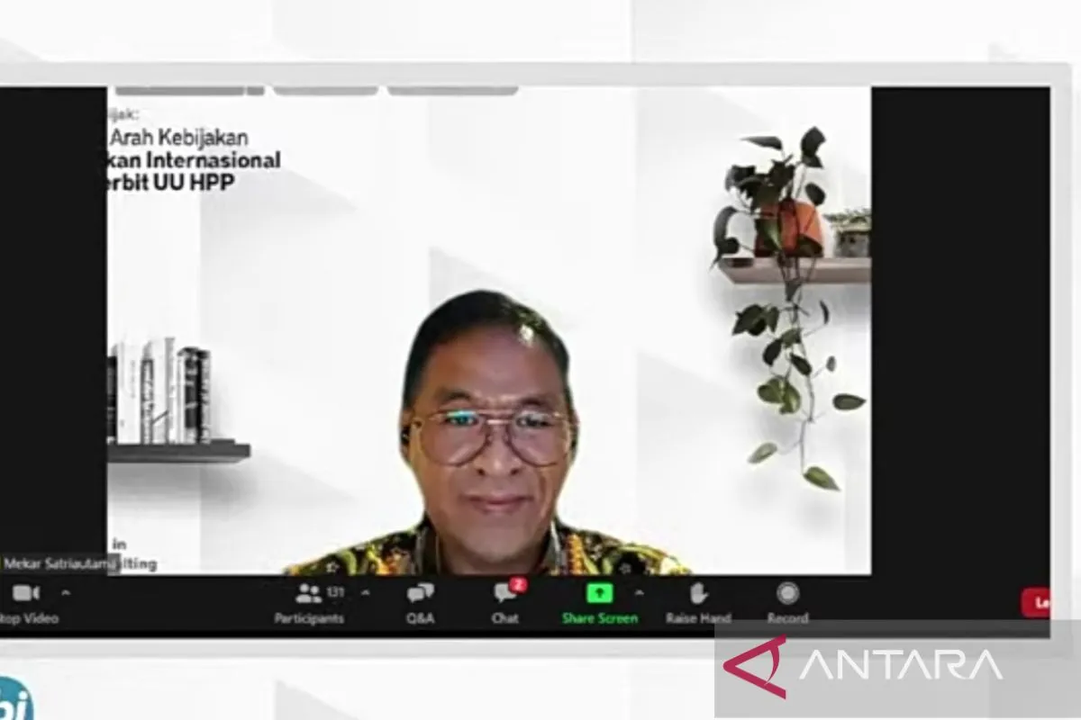 Tangkapan layarDirektur Perpajakan Internasional Direktorat Jenderal Pajak Mekar Satria Utama dalam webinar "Menerka Arah Kebijakan Perpajakan Internasional Pasca Terbit UU HPP", Jumat (25/2/2022). (ANTARA/Sanya Dinda)
