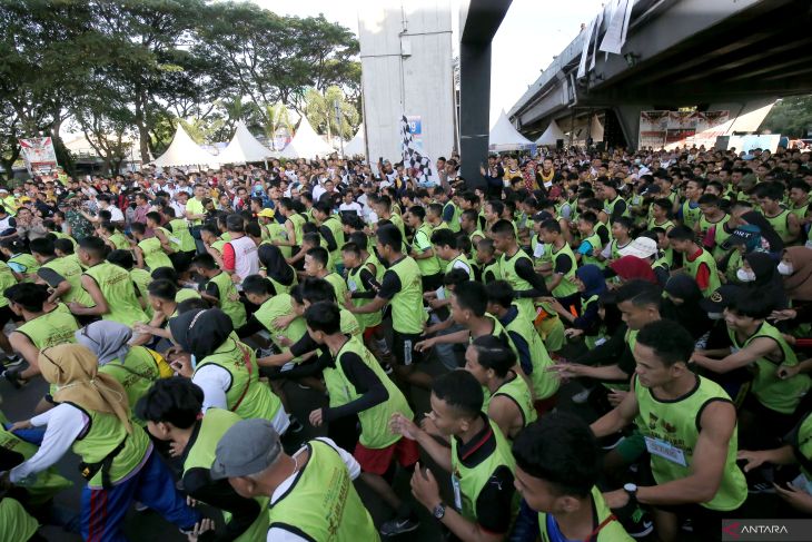 Ribuan peserta mengikuti lomba Lari Marathon pada Kapolrestabes Makassar Cup 2022 dalam rangka memperingati Hari Kelahiran Pancasila di Makassar, Rabu (1/06/2022). ANTARA Foto/Nur Suhra Wardyah
