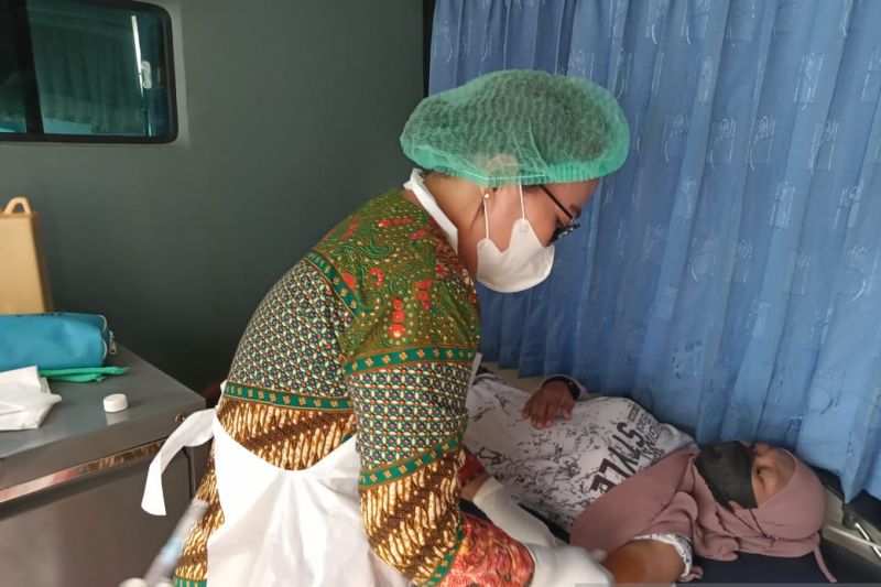 Ilustrasi petugas kesehatan memasangkan alat kontrasepsi pada salah seorang ibu dari kategori pasangan usia subur (PUS) melalui layanan KB keliling BKKBN Sulsel. Antara/ Suriani Mappong