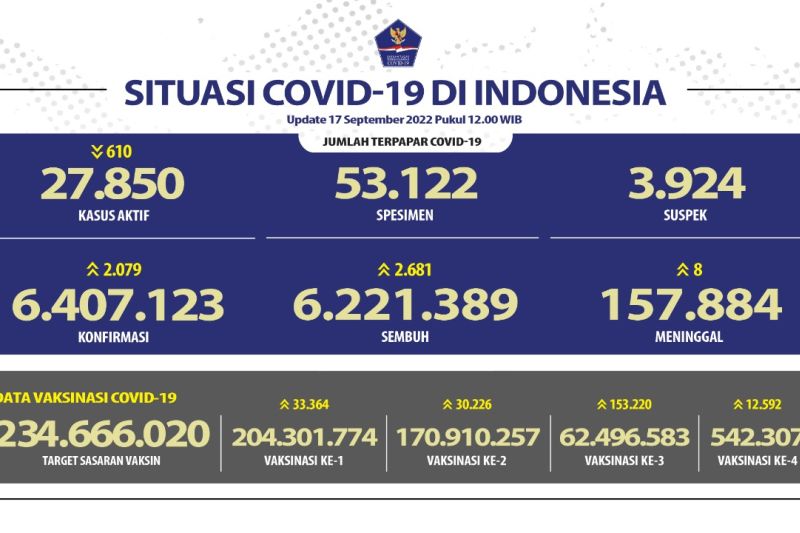 Data situasi COVID-19 di Indonesia, Sabtu (17/9/2022) yang dihimpun Satuan Tugas (Satgas) Penanganan COVID-19. (ANTARA/HO-Satgas COVID-19)