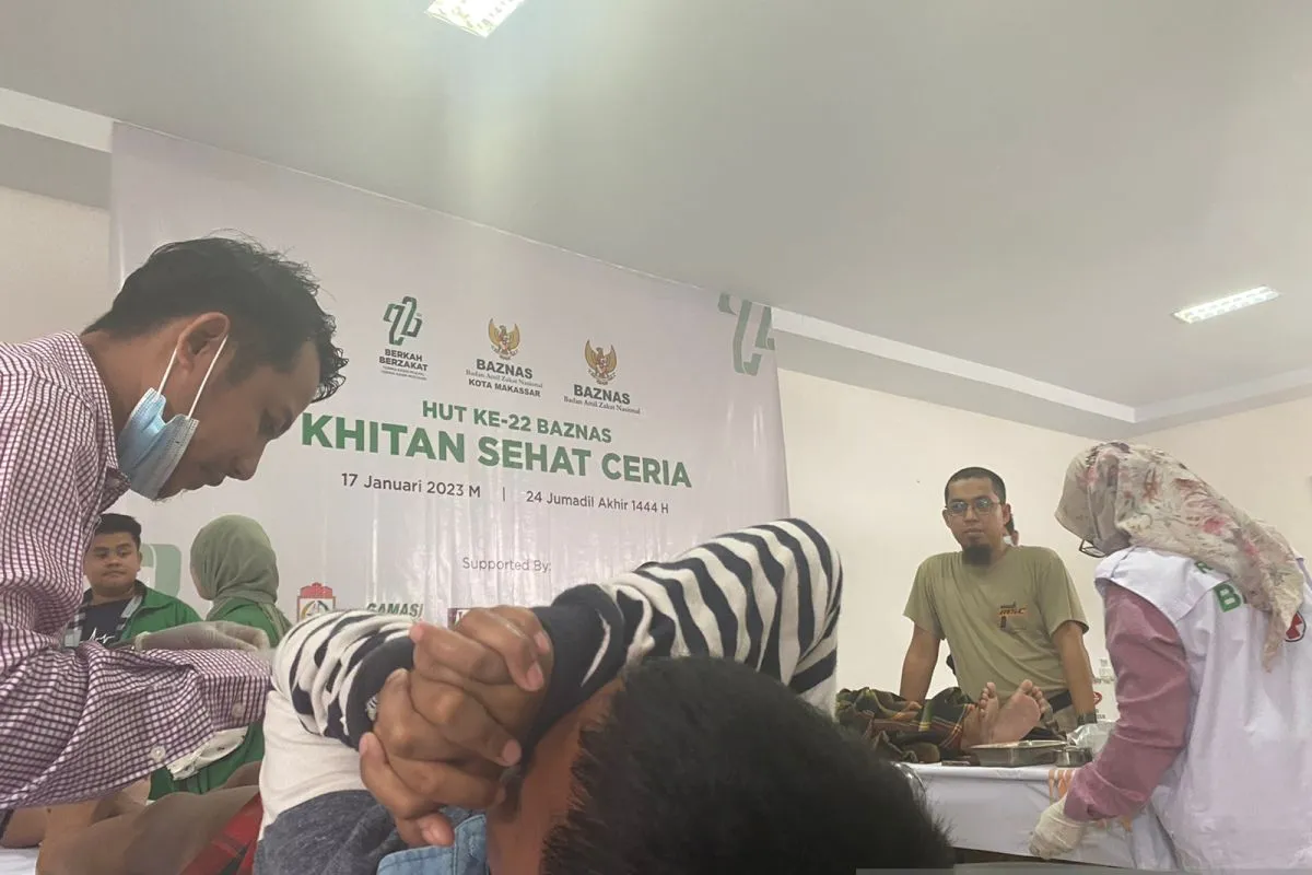 Makassar (ANTARA) - Badan Amil Zakat Nasional (Baznas) Makassar menggelar sunatan massal kepada 100 orang anak pada peringatan milad (hari jadi) ke-22, Selasa.