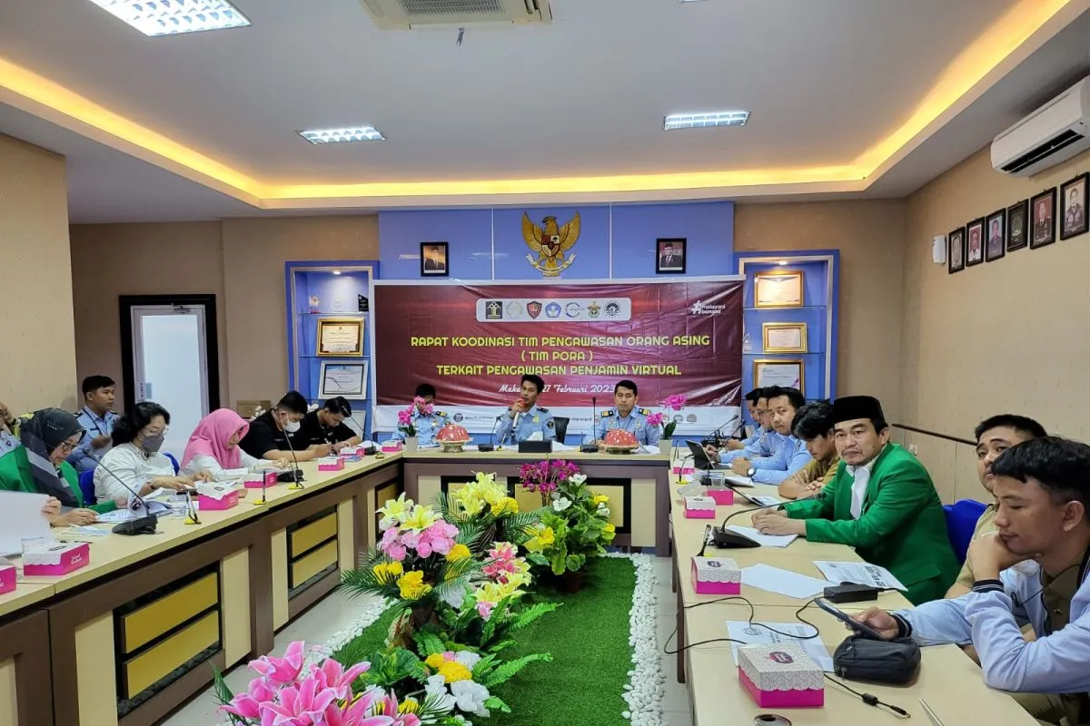 Makassar (ANTARA) - Kantor Imigrasi Kelas 1 TPI Makassar dan sejumlah perguruan tinggi (PT) menggelar Rapat Koordinasi Tim Pengawasan Orang Asing (Timpora), khususnya terkait pengawasan penjaminan virtual di Makassar, Sulawesi Selatan, Senin.