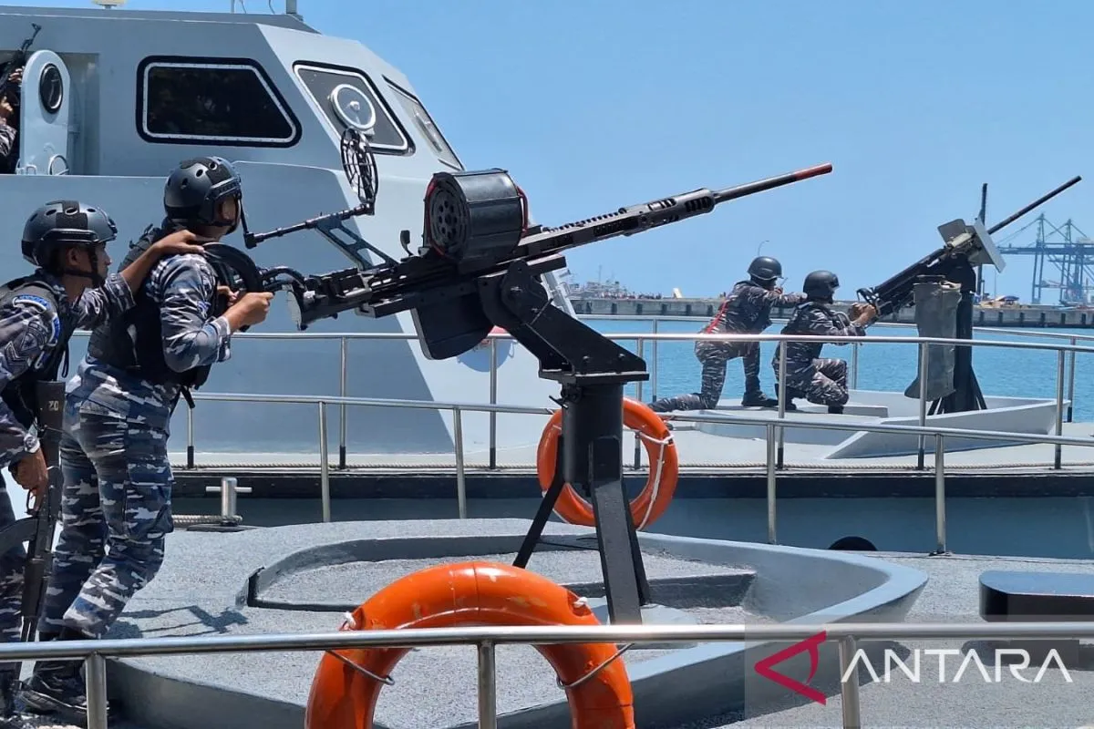 Makassar (ANTARA) - Pangkalan Utama TNI Angkatan Laut (Lantamal) VI Makassar menggelar latihan dan simulasi pertahanan keamanan dari serangan udara yang menggambarkan keberhasilan personel dalam melumpuhkan gempuran serangan pesawat udara ke arah pertahanan.