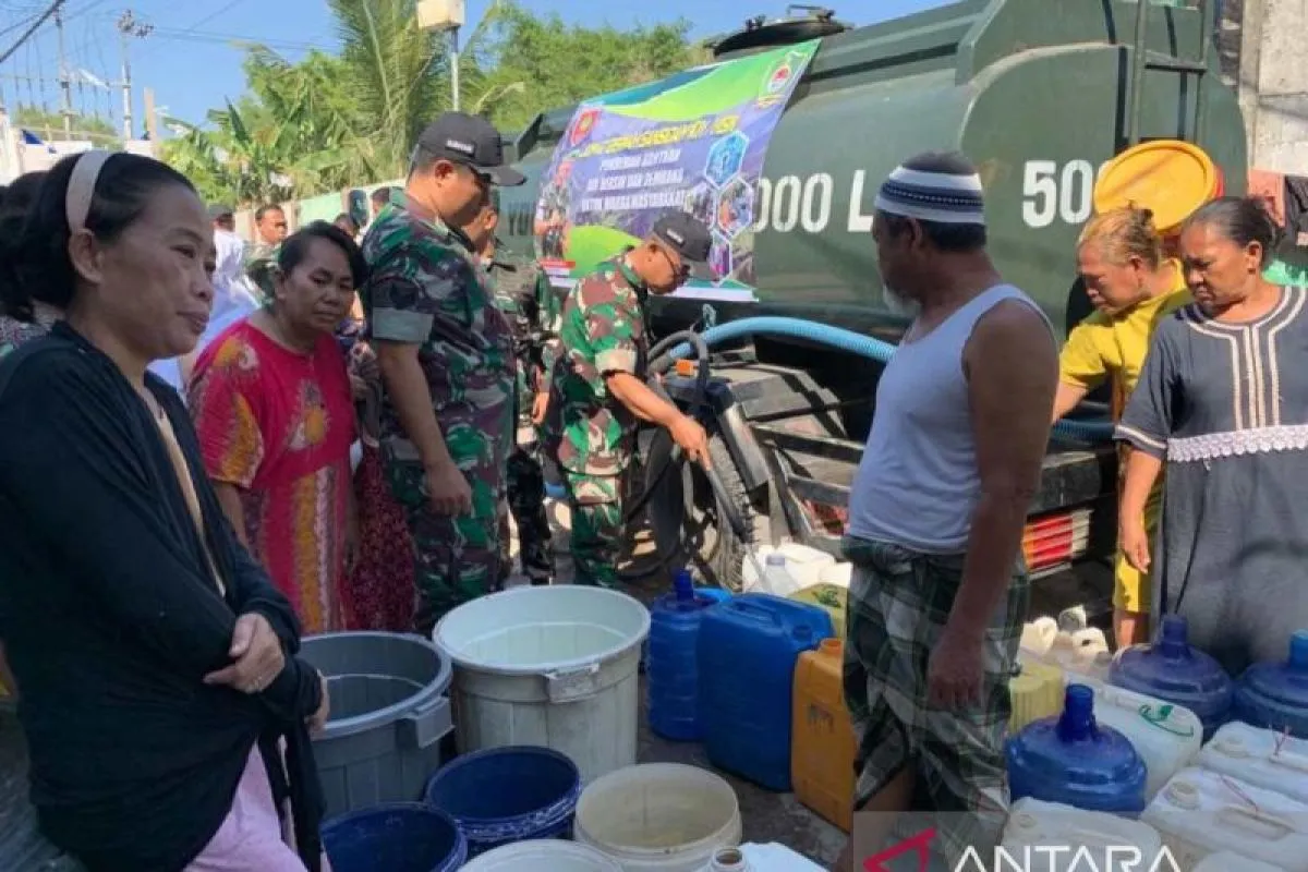 Makassar (ANTARA) - Bidang Sandi dan Siber Kodam (Sansidam) XIV/Hasanuddin menyalurkan bantuan berupa air bersih kepada masyarakat yang terdampak kekeringan akibat kemarau panjang di Makassar, Sulawesi Selatan.