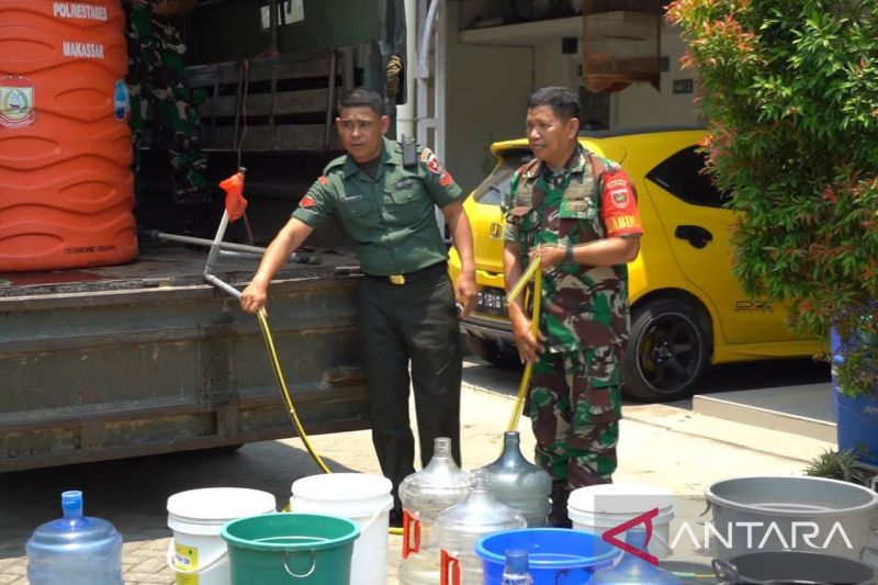 Makassar (ANTARA) - Kodam XIV/Hasanuddin mendistribusikan air bersih sebanyak 5.000 liter kepada warga yang kesulitan mendapatkan air bersih sejak beberapa bulan terakhir karena dampak dari El Nino.