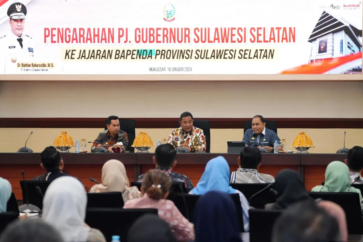 Makassar (ANTARA) - Penjabat Gubernur Sulsel Bahtiar Baharuddin, mengajak seluruh jajaran Badan Pendapatan Daerah (Bapenda) dan Badan Keuangan dan Aset Daerah (BKAD) Sulsel, untuk terus berupaya meningkatkan pendapatan daerah melalui perbaikan kinerja dan inovasi.