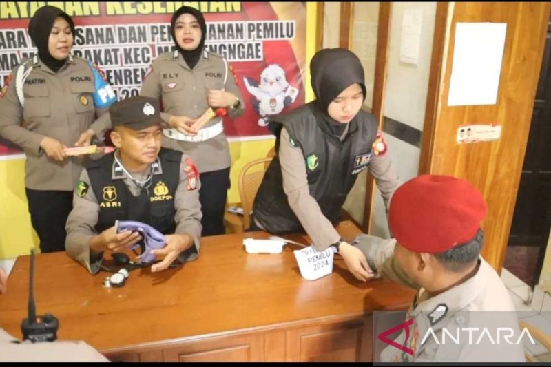 Makassar (ANTARA) - Kepolisian Resor Sidrap, Sulawesi Selatan pada hari kedua setelah pencoblosan menerjunkan tim dari Seksi Kedokteran Kesehatan (Sidokkes) serta personel Polwan untuk melakukan pemeriksaan kesehatan kepada para petugas pemilu di kecamatan.