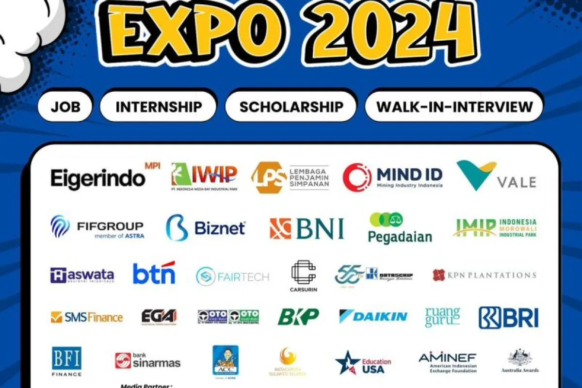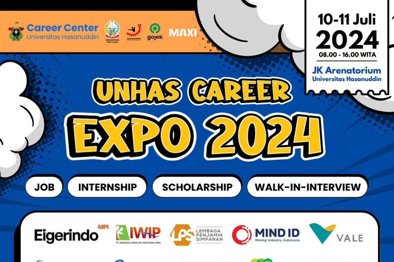 Makassar (ANTARA) - Puluhan perusahaan dari berbagai sektor, termasuk BUMN, perbankan, manufaktur, teknologi informasi, kesehatan, dan pendidikan membuka lowongan pekerjaan di ajang Unhas Career Expo di JK Arenatorium/GOR Unhas, 10-11 Juli 2024.
