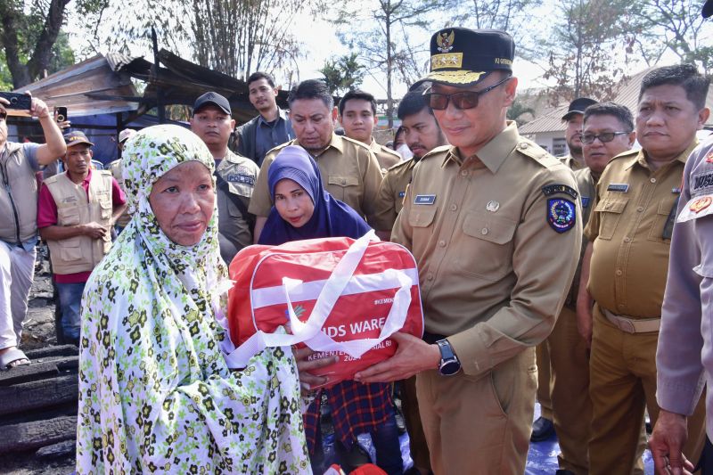 Makassar (ANTARA) - Penjabat (Pj) Gubernur Sulawesi Selatan (Sulsel) Zudan Arif Fakrulloh menyerahkan bantuan kepada korban kebakaran yang terjadi di Tempat Pembuangan Akhir (TPA) Antang, di Jalan AMD Borong Jambu, Kecamatan Manggala, Makassar.