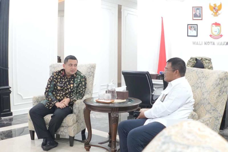 Wali Kota Makassar Munafri Arifuddin saat menerima kunjungan dari Balai Besar Pelaksanaan Jalan Nasional (BBPJN) Sulawesi Selatan membahas percepatan akses sambungan air bersih dari PDAM khususnya di wilayah utara dan timur kota Makassar, Kamis (22/5/2025). ANTARA/HO-Pemkot Makassar
