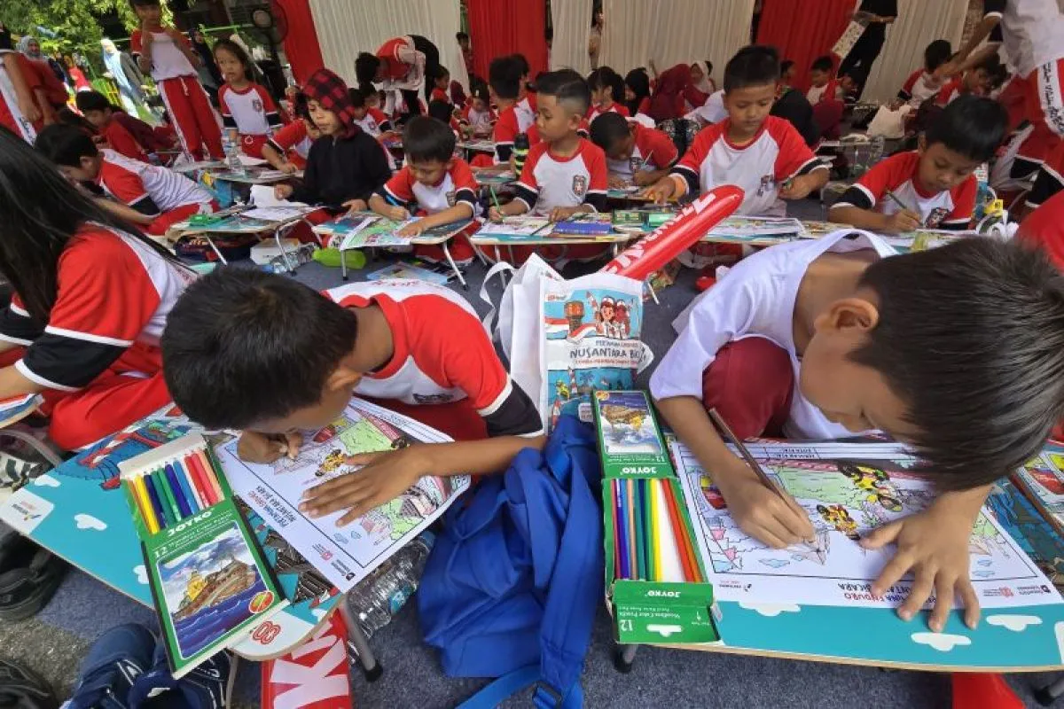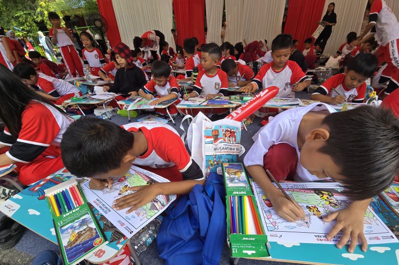 mewarnai untuk siswa sekolah dasar ini diikuti 200 peserta yang penuh semangat menuangkan imajinasi mereka dalam mewarnai karya.