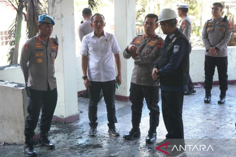 Makassar (ANTARA) - Kapolda Sulsel Irjen Pol. Rusdi Hartono memantau langsung proses olah Tempat Kejadian Perkara (TKP) di Kantor DPRD Kota Makassar usai dibakar massa saat demonstrasi di Jalan Andi Pangeran Pettarani Makassar, Sulawesi Selatan.
