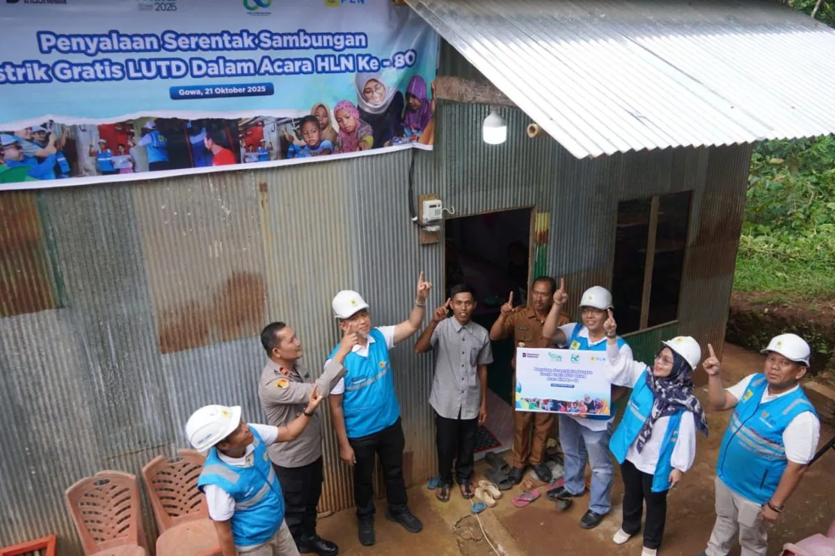 Manajemen PLN UID Sulselrabar secara simbolis menyalakan bantuan sambungan listrik gratis Light Up The Dream di Kabupaten Gowa. Bertepatan dengan Hari Listrik Nasional ke-80, PLN UID Sulselrabar melakukan penyalaan bantuan penyambungan listrik gratis bagi 448 warga di Sulselrabar secara serentak. ANTARA/HO-Humas PLN