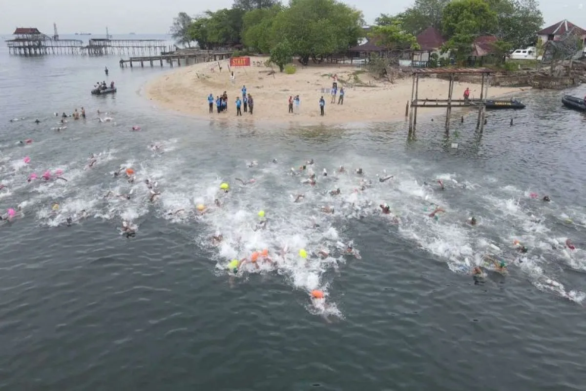 Lomba renang di laut tersebut dihadiri juri profesional dari Persatuan Renang Seluruh Indonesia (PRSI) dan tim dari Kodaeral VI.