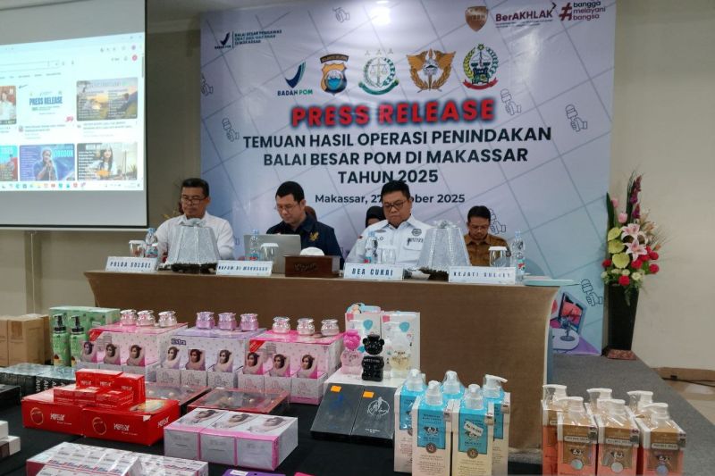 "Penindakan ini dilakukan 16 Oktober 2025 lalu oleh tim PPNS BBPOM bersama Korwas PPNS Ditreskrimsus Polda Sulsel di salah satu toko milik P (32 tahun)," kata Kepala BBPOM Makassar Yosef Dwi Irwan Prakasa Setiawan di Makassar, Senin.