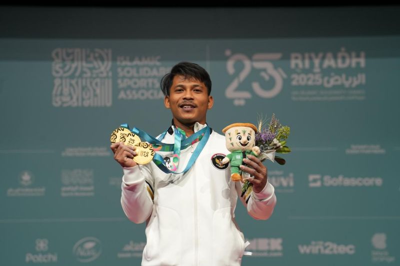 Jakarta (ANTARA) - Atlet angkat besi Muhammad Husni mempersembahkan tiga medali emas dari kelas 60 kg putra pada Islamic Solidarity Games (ISG) Riyadh 2025, Arab Saudi.