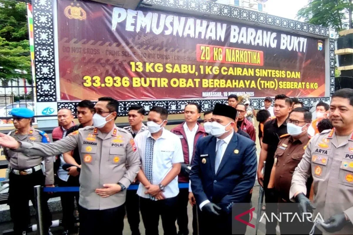 Kapolda menjelaskan, untuk jajaran Polrestabes Makassar laporan pengungkapan kasus narkoba pada November 2025 tercatat jumlah laporan polisi sebanyak 59 laporan, dengan 100 orang ditetapkan tersangka.