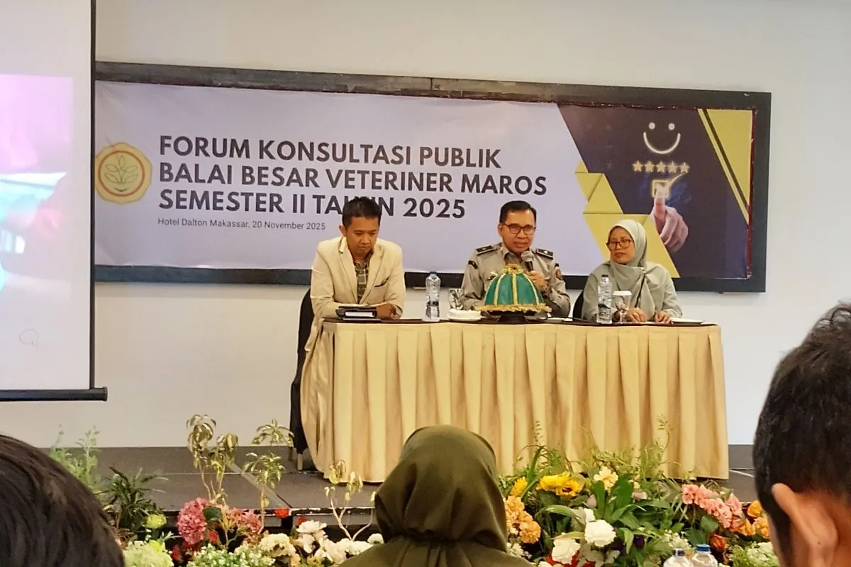 Makassar (ANTARA) - Balai Besar Veteriner (BBV) Maros menggelar Forum Konsultasi Publik (FKP) Semester II Tahun 2025 sebagai upaya menguatkan layanan kesehatan hewan (keswan) di lapangan.
