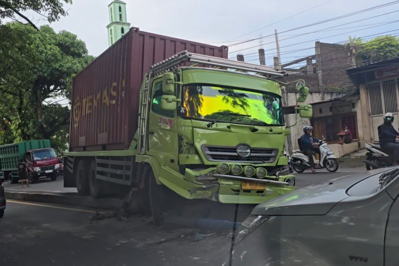 Makassar (ANTARA) - Sebuah truk membawa peti kemas mengalami kecelakaan tunggal di Jalan Poros Maros Makassar, Selasa sore, sehingga menyebabkan kemacetan panjang di jalur tersebut terutama yang menuju ke Kota Makassar.