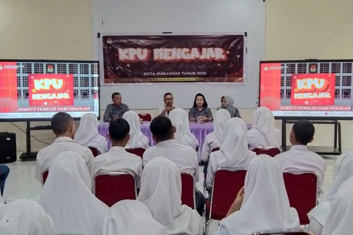 KPU Kota Makassar saat menghadirkan debat demokrasi di kalangan siswa SMAN 4 Makassar melalui Program KPU Mengajar di SMAN 4 Makassar, Selasa (20/01/2026). ANTARA/HO-Humas KPU Makassar
