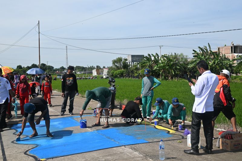 Makassar (ANTARA) - Ribuan pelajar di Kabupaten Sidenreng Rappang (Sidrap) menggunakan jalur beton sepanjang 3 kilometer di Rappang sebagai kanvas panjang untuk melukis, Rabu.