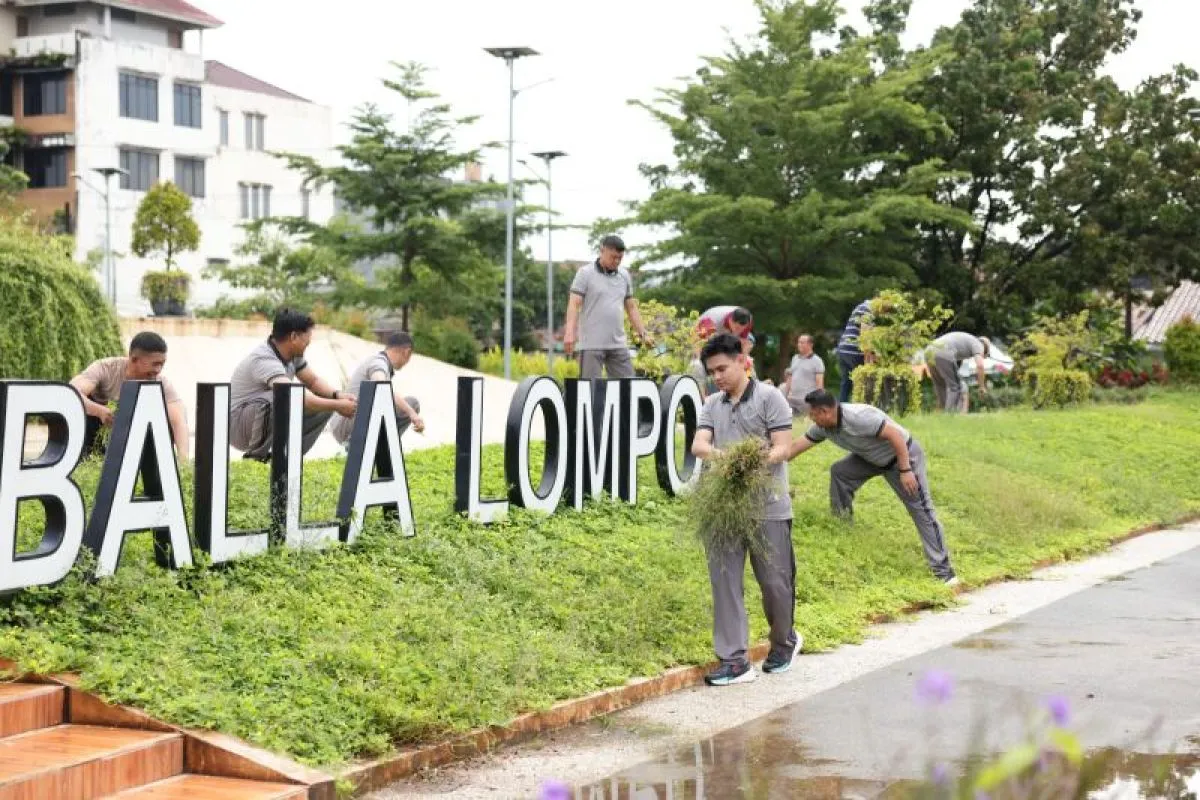 Di tempat terpisah, Kapolres Gowa AKBP Muhammad Aldy Sulaiman bersama para pejabat utamanya mengerahkan sekitar 200 personel membersihkan halaman dan lingkungan Istana Kerajaan Balla Lompoa di Kabupaten Gowa.