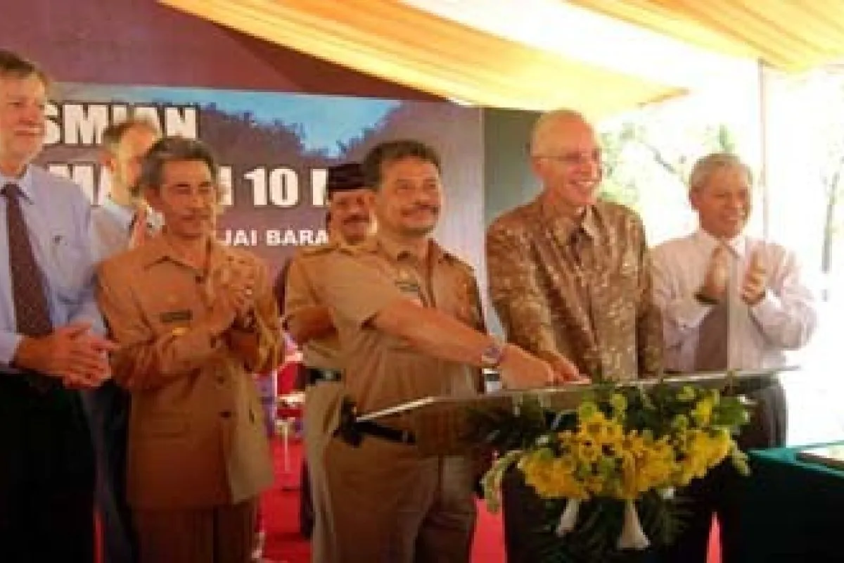 MAKASSAR - Gubernur Sulawesi Selatan, Syahrul Yasin Limpo menekansirene peresmian PLTMH Tangka/Manipi di Makassar, Kamis (3/3).(FOTO ANTARA/Humas PLN)