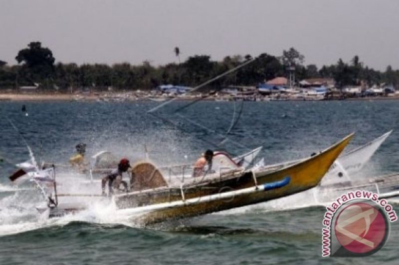 Sejumlah peserta beradu cepat pada lomba perahu tradisional (katinting) di Pulau Sanrobengi, Kabupaten Takalar, Sulawesi Selatan, Sabtu (31/10). Lomba balap perahu tradisional (katinting) merupakan rangkaian Festival Budaya Pulau Sanrobengi untuk melestarikan budaya masyarakat pesisir Takalar dan juga menjadi salah satu objek wisata khas Kabupaten Takalar. ANTARA FOTO/Abriawan Abhe/ama/15