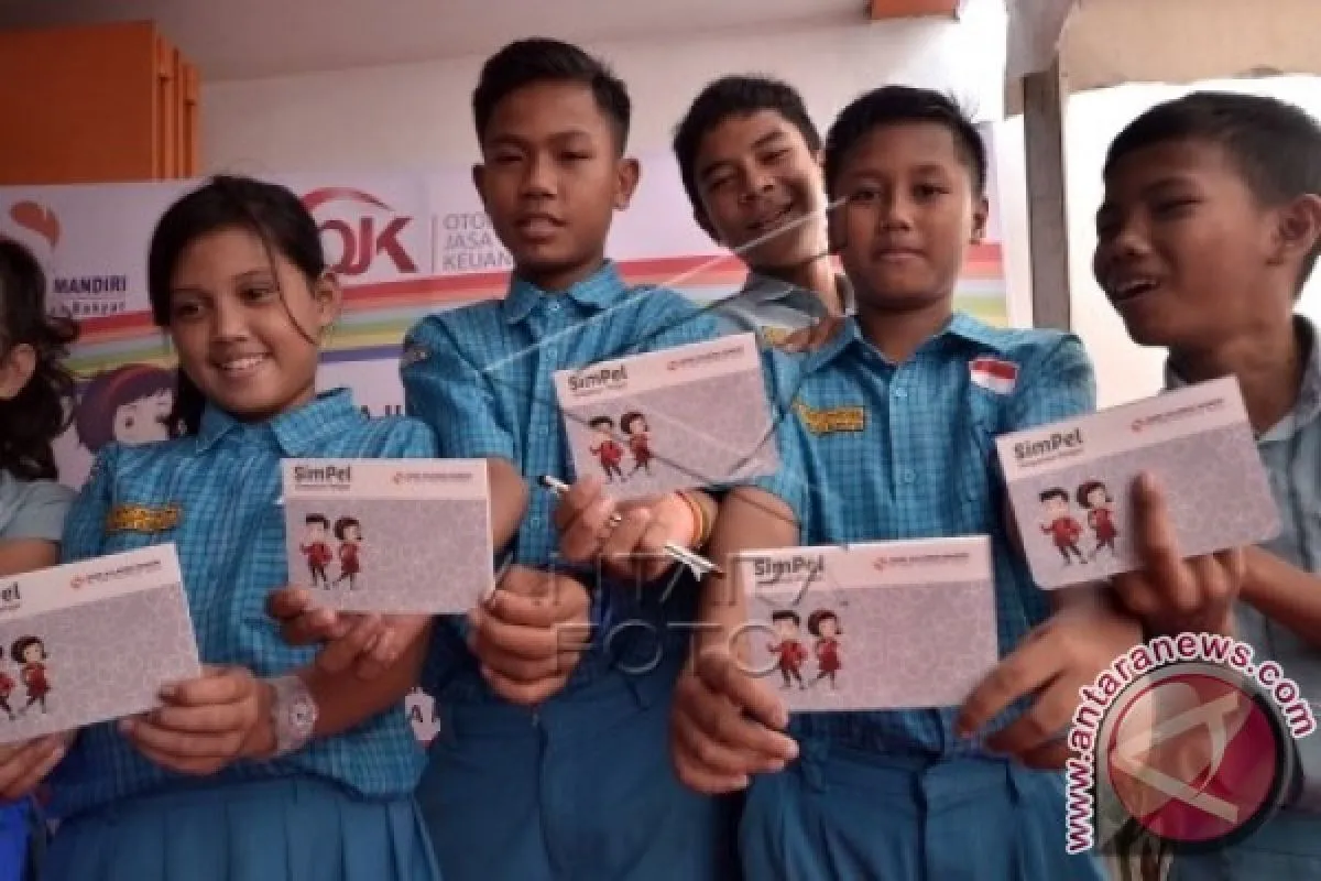 Murid SD Katolik Santo Yakobus memperlihatkan buku tabungan Simpanan Pelajar (SimPel) Bank Perkreditan Rakyat (BPR) Sulawesi Mandiri saat diresmikan di Makassar, Sulawesi Selatan, Rabu (17/2). Program tabungan tersebut menyasar pelajar guna meningkatkan budaya menabung sejak dini dimana kepesertaan pelajar di Sulsel saat ini adalah 25.072 tabungan Simpel dari 477 sekolah. ANTARA FOTO/Dewi Fajriani/foc/16.