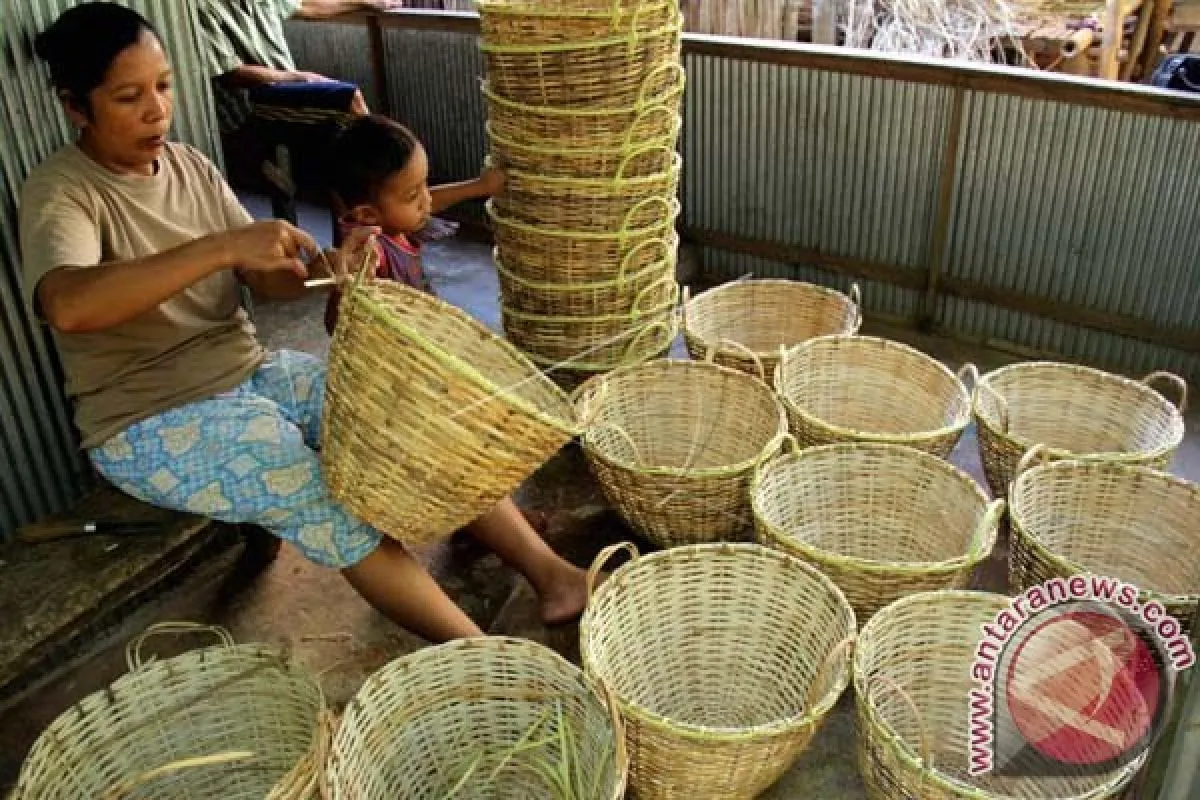 Perajin menyelesaikan pembuatan keranjang berbahan rotan di industri rumahan, Kecamatan Ma\'rang, Kabupaten Pangkep, Sulawesi Selatan, Sabtu (16/9). Keranjang berbahan rotan yang didatangkan dari Makassar tersebut dipasarkan ke sejumlah wilayah di Sulsel dengan harga Rp12 ribu hingga Rp20 ribu tergantung ukuran keranjang. ANTARA FOTO/Abriawan Abhe/pd/17