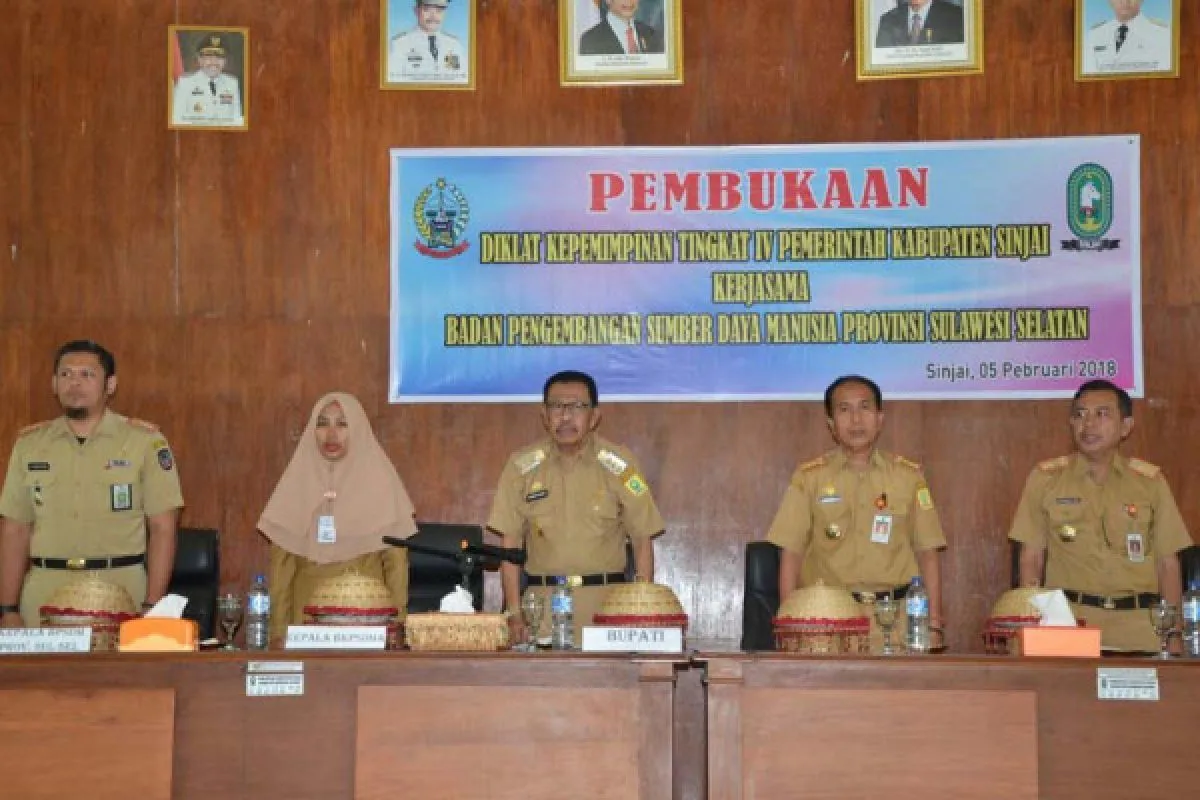 Sinjai (Antaranews Sulsel) - Pemerintah Kabupaten (Pemkab) Sinjai bekerjasama Badan Pengembangan Sumber Daya Manusia (BPSDM) Sulawesi Selatan menggelar Diklat Kepemimpinan (Diklatpim) Tingkat IV lingkup kabupaten setempat di Aula Badan Kepegawaian dan Pengembangan Sumber Daya Manusia (BPKSDM) Sinjai, Senin.