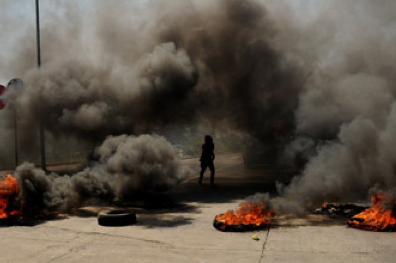MAKASSAR - Seorang mahasiswa yang tergabung dalam beberapa aliansi mahasiswa Makassar menutup akses jalan Tol Reformasi saat berunjuk rasa di Makassar, Sulsel, Selasa (26/6). Mereka menutup akses jalan tol sebagai protes dan penolakan terhadap kedatangan Wakil Presiden Boediono, dalam kunjungan kerja di Makassar. FOTO ANTARA/Sahrul Manda Tikupadang/12