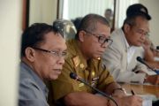 Kepala Kanwil Kementerian Agama Provinsi Sulsel Abd Wahid Thahir (kiri) memberikan tanggapan kepada anggota dewan saat Rapat Dengar Pendapat terkait kasus PT Abu Tour di gedung DPRD Sulsel, Makassar, Sulawesi Selatan, Selasa (23/1). Manajemen PT Abu Tour dipanggil DPRD untuk menjelaskan terkait penundaan keberangkatan jamaah umroh berjumlah 16.467 orang guna mengantisipasi terjadinya kejadian berulang yang menimpa First Travel. PT Abu Tour menjanjikan keberangkatan pada 10 Februari 2018. ANTARA FOTO/Darwin Fatir/ama/YU/18.